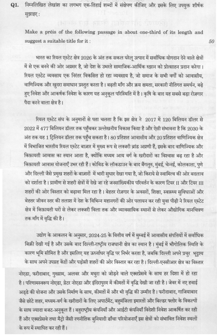 (Download) UPSC SOs/Steno's Examination Paper -III Noting and Drafting, Precis Writing 2025
